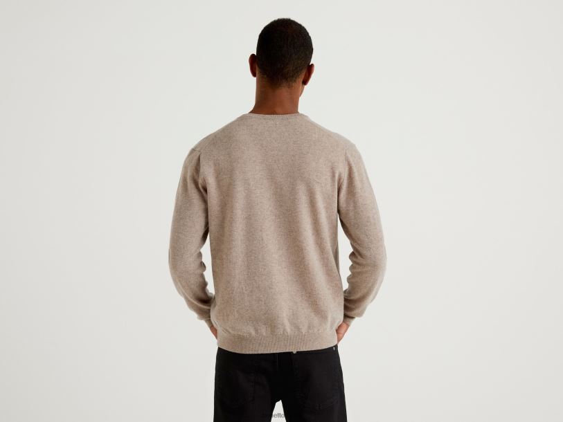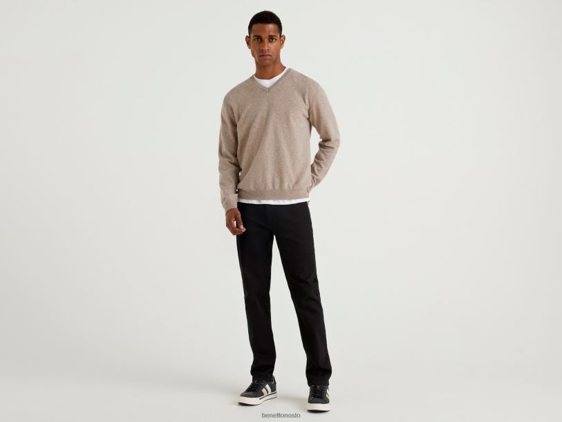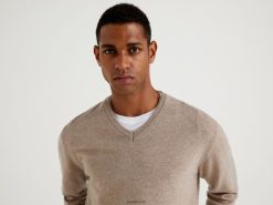 duegrå Benetton menn duegrå genser med v-hals i ren merinoull 20TRB1166