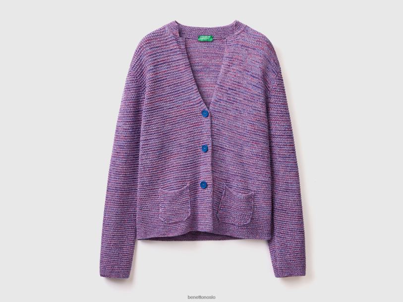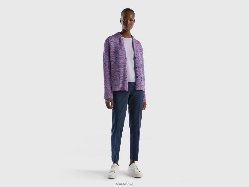 fiolett Benetton kvinner 100 % strikket jakke i bomull 20TRB3583