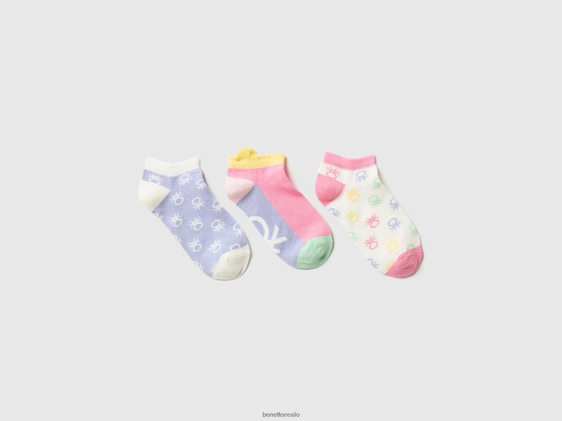 flerfarget Benetton barn tre par korte sokker 20TRB2750