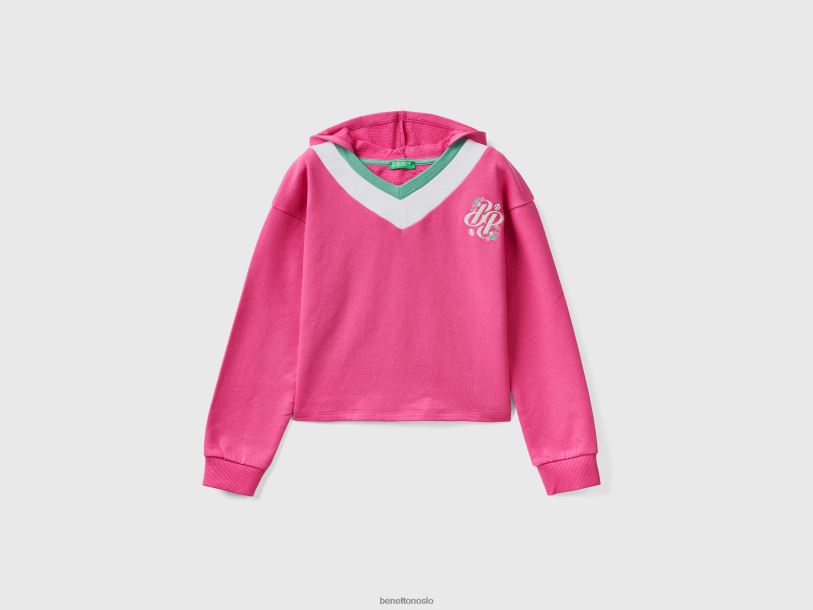 fuchsia Benetton barn cropped hettegenser med v-hals 20TRB5320