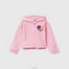 fuchsia Benetton barn genser i økologisk bomull med glitrende trykk 20TRB5625