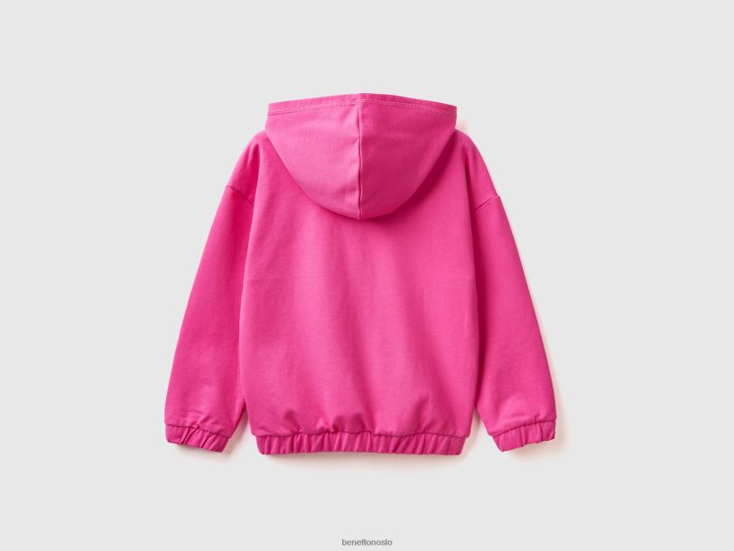 fuchsia Benetton barn hettegenser med glidelås og brodert logo 20TRB2543