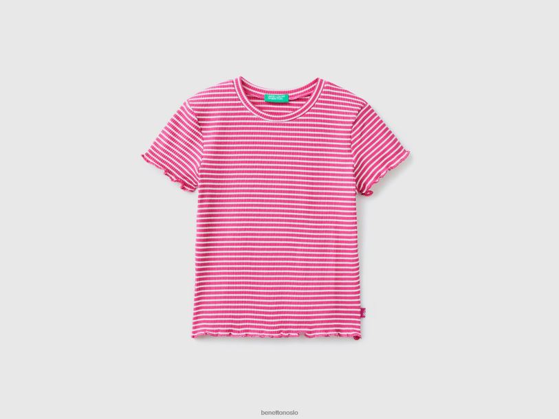 fuchsia Benetton barn stripet t-skjorte i bomull 20TRB2469