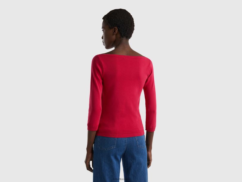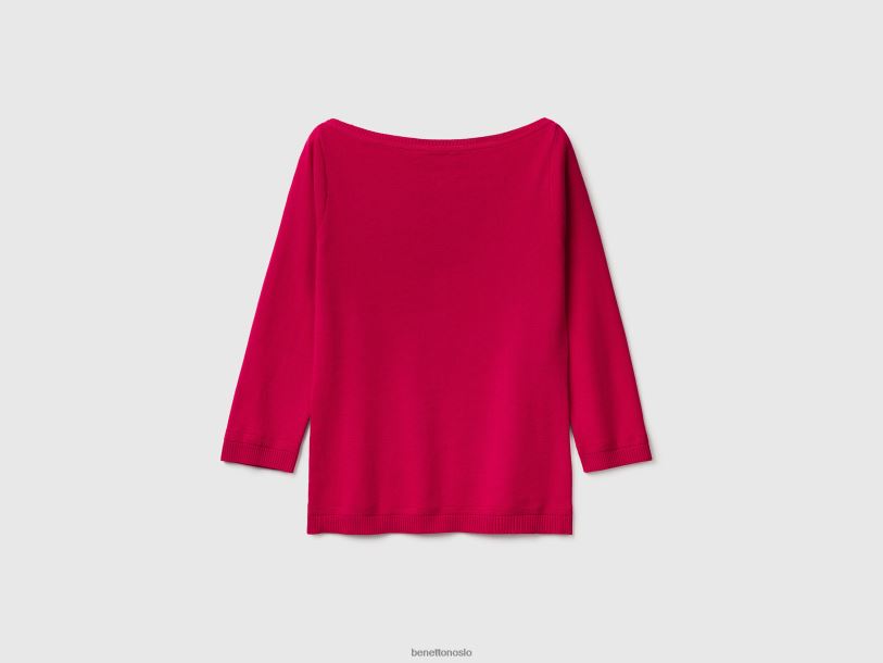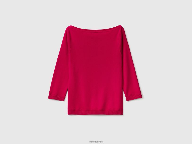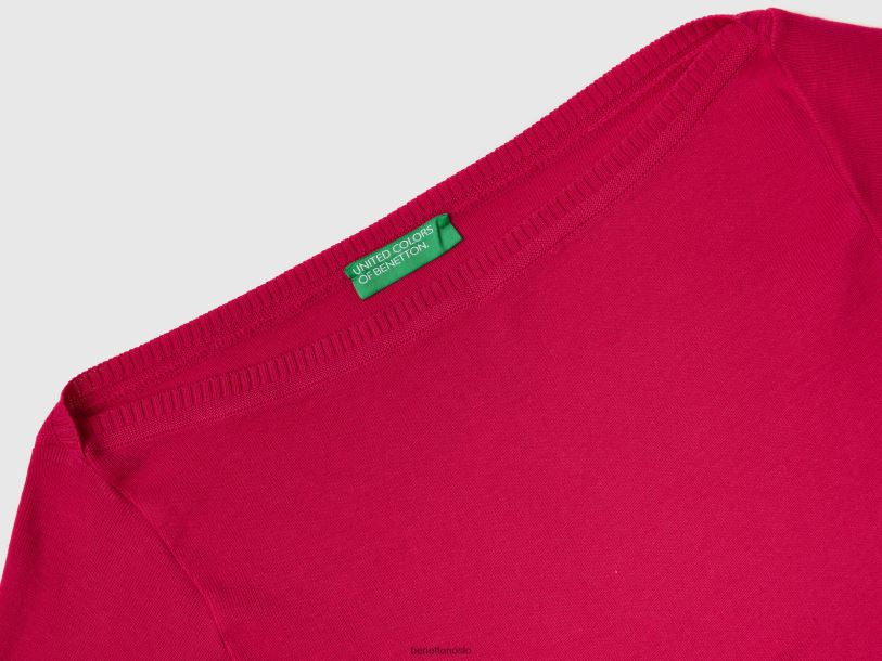 fuchsia Benetton kvinner 100% bomullsgenser med båthals 20TRB141