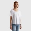 fuchsia Benetton kvinner langfiber t-skjorte i bomull 20TRB3802