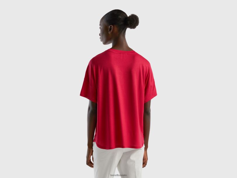 fuchsia Benetton kvinner t-skjorte i bærekraftig stretch viskose 20TRB3813