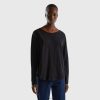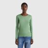 fuchsia Benetton kvinner t-skjorte med båthals i 100 % bomull 20TRB3808