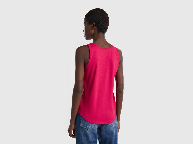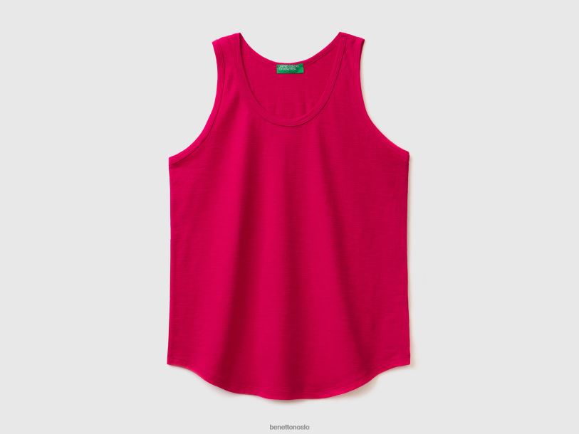 fuchsia Benetton kvinner tank topp i lett bomull 20TRB3869