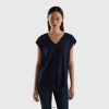 fuchsia Benetton kvinner V-hals t-skjorte i slub bomull 20TRB3790
