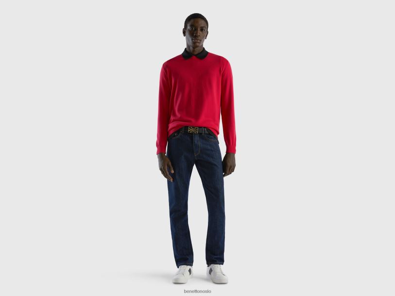 fuchsia Benetton menn genser med rund hals i 100 % bomull 20TRB1116