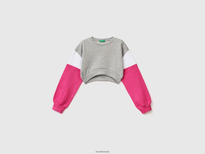 grå Benetton barn colour block cropped sweatshirt 20TRB2541