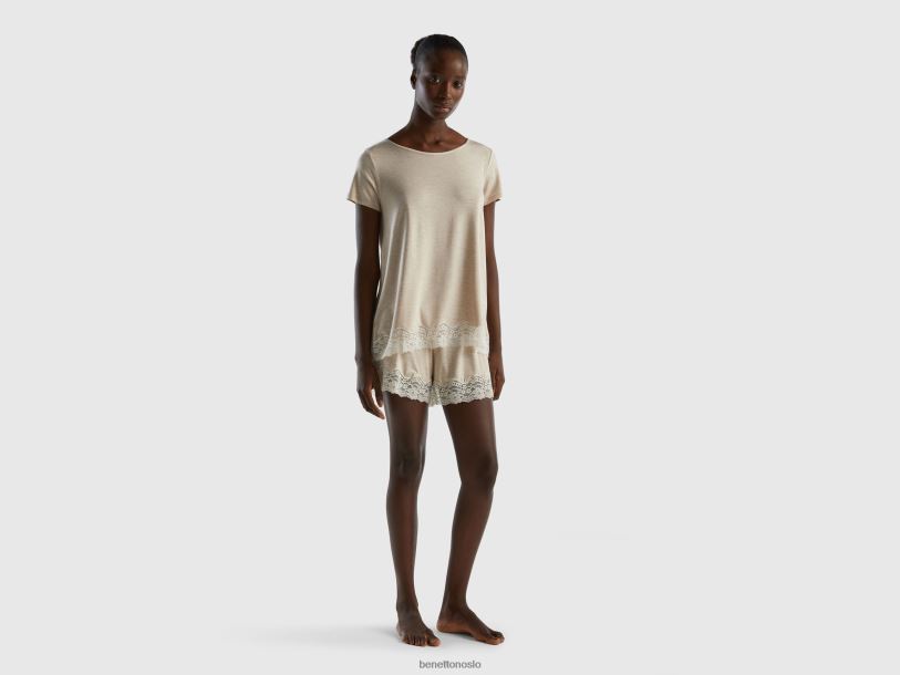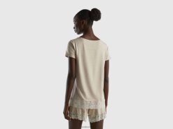 grå Benetton kvinner flytende kortermet t-skjorte med blonder 20TRB4309