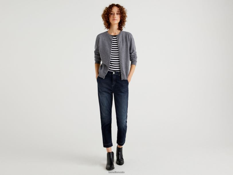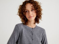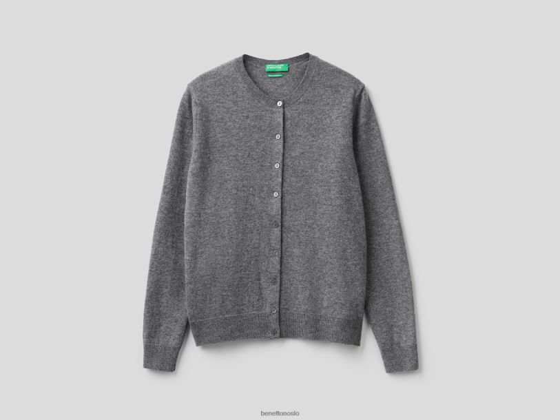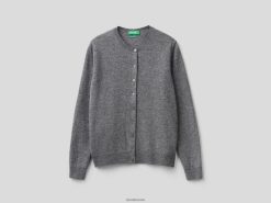 grå Benetton kvinner grå cardigan med rund hals i ren merinoull 20TRB3623