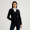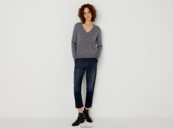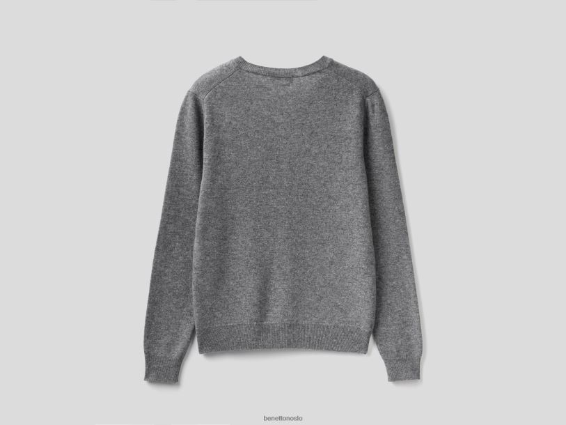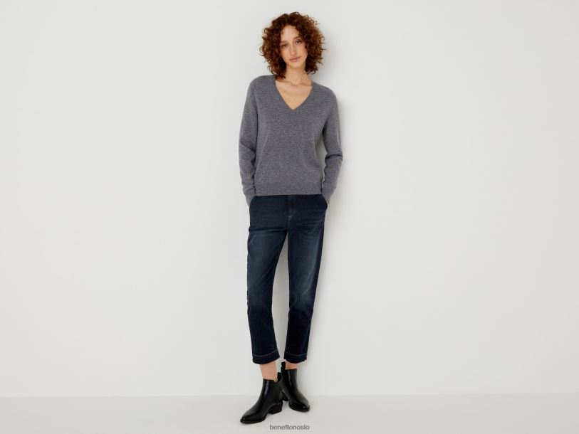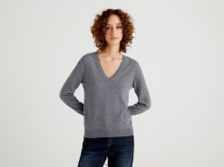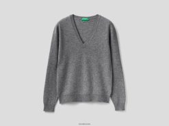 grå Benetton kvinner grå v-hals genser i ren merinoull 20TRB3696