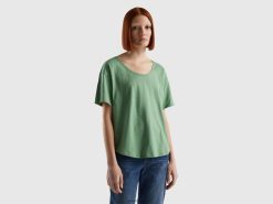 grønn Benetton kvinner kortermet t-skjorte i lett bomull 20TRB310