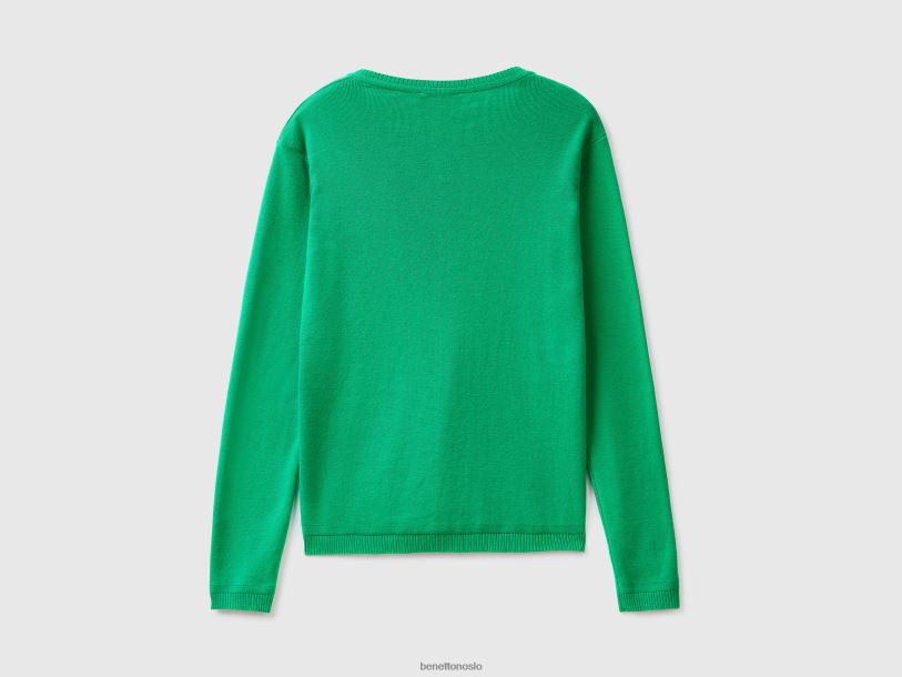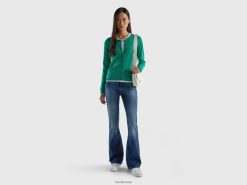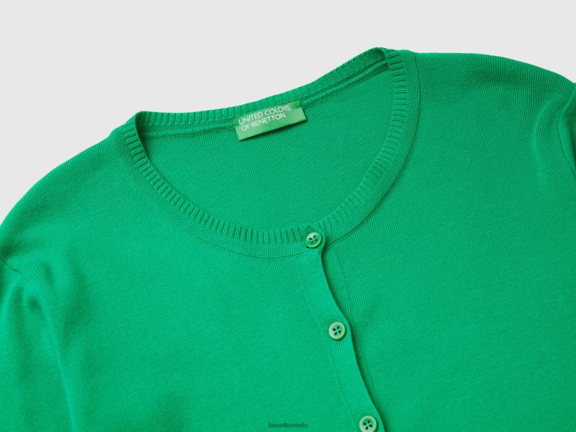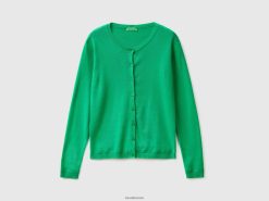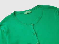 grønn Benetton kvinner cardigan med rund hals i ren bomull 20TRB3687