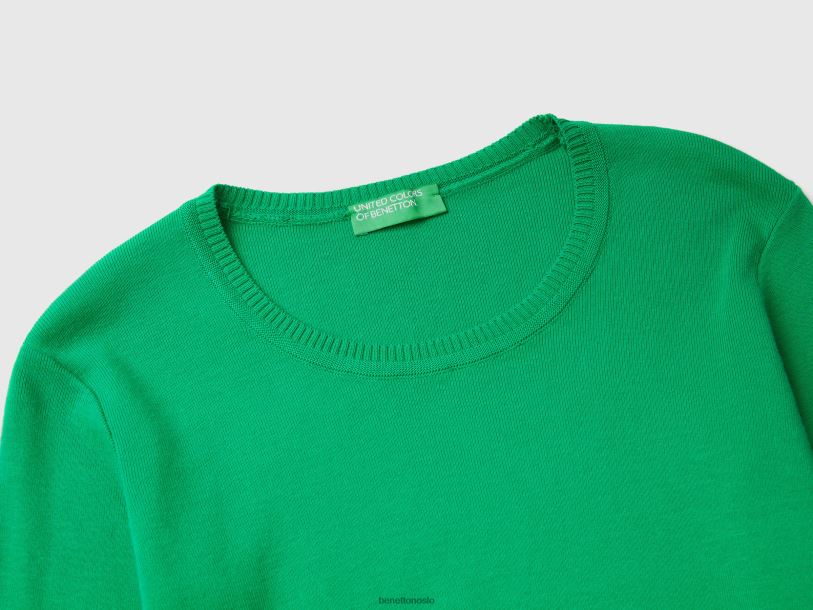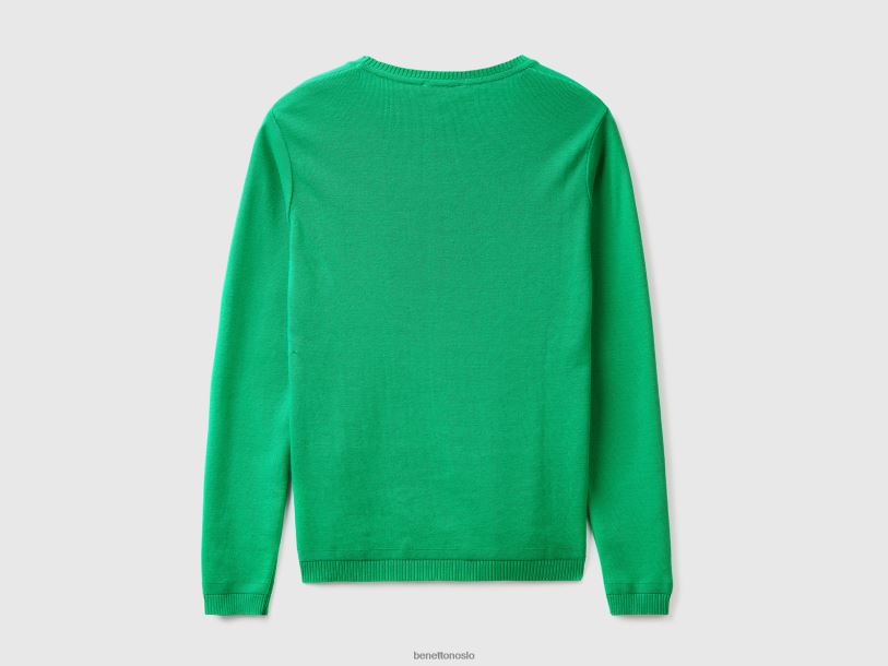grønn Benetton kvinner genser med rund hals i ren bomull 20TRB3703