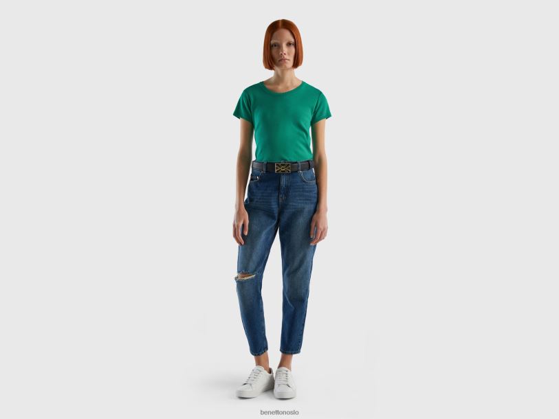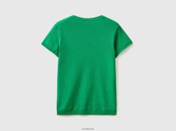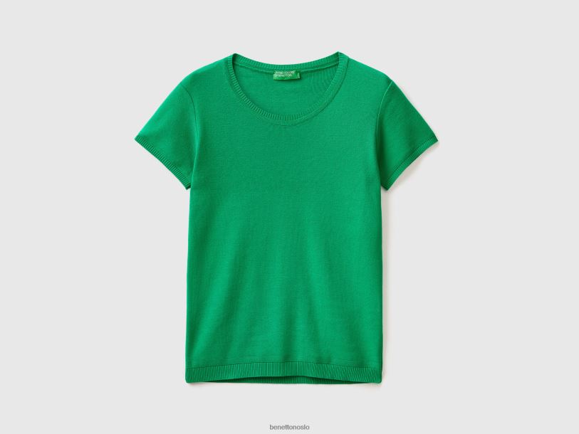 grønn Benetton kvinner kortermet genser i 100 % bomull 20TRB3493