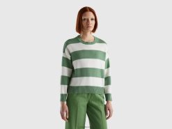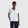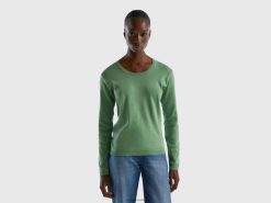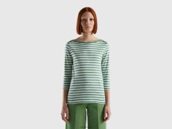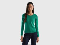grønn Benetton kvinner langfiber t-skjorte i bomull 20TRB328