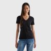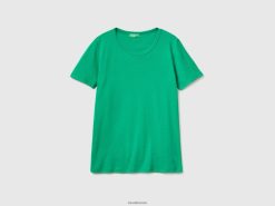 grønn Benetton kvinner langfiber t-skjorte i bomull 20TRB456