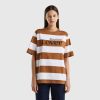 grønn Benetton kvinner stripet t-skjorte med slagord 20TRB395
