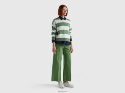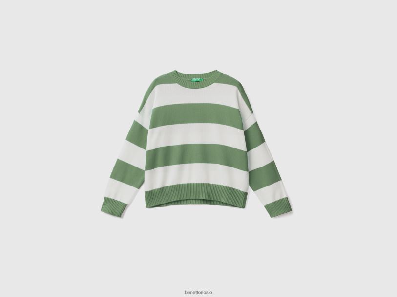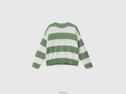grønn Benetton kvinner stripete genser i trikotbomull 20TRB108