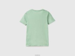 grønn Benetton kvinner t-skjorte i ren bomull med v-hals 20TRB3897