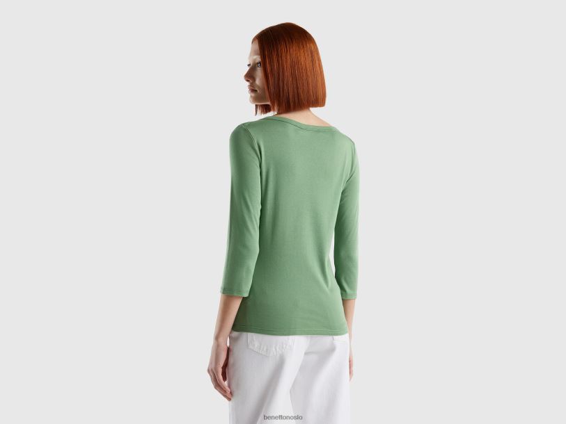 grønn Benetton kvinner t-skjorte med båthals i 100 % bomull 20TRB3799