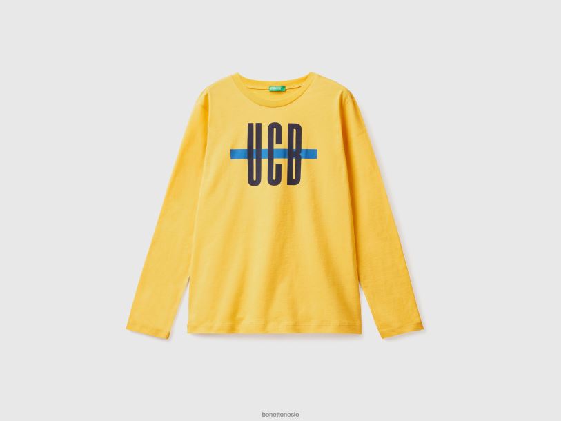 gul Benetton barn langermet t-skjorte i økologisk bomull 20TRB1660