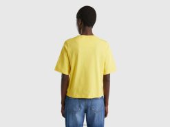 gul Benetton kvinner 100% bomull t-skjorte i boxy fit 20TRB367