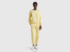 gul Benetton kvinner sweatshirt med rund hals i bomullsblanding 20TRB938