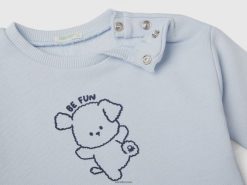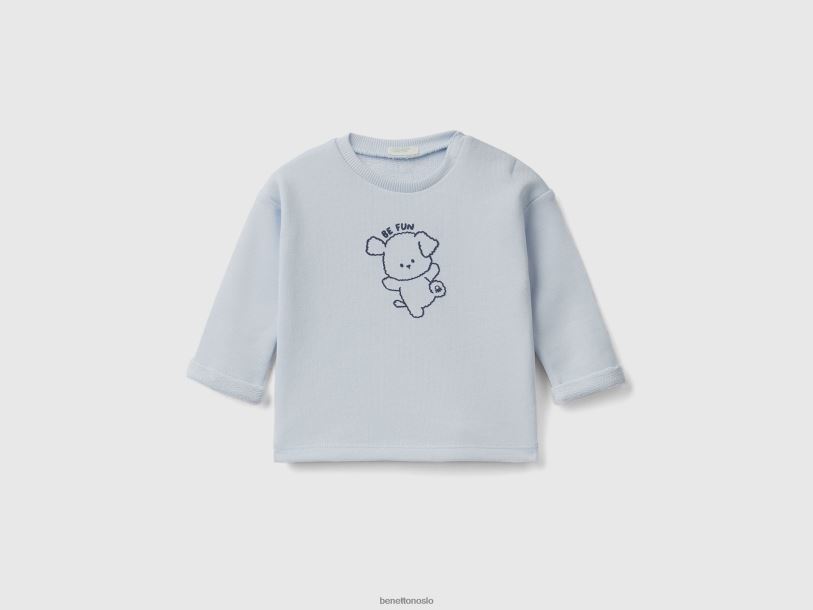 himmelblå Benetton barn myk genser i økologisk bomull med trykk 20TRB5839