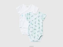 himmelblå Benetton barn to kortermede bodyer i økologisk bomull 20TRB3195
