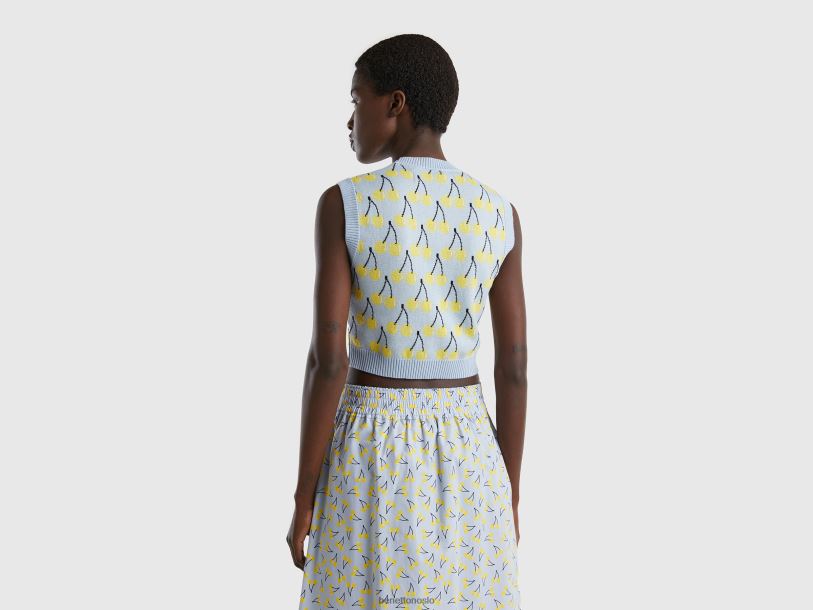 himmelblå Benetton kvinner himmelblå vest med kirsebærmønster 20TRB46