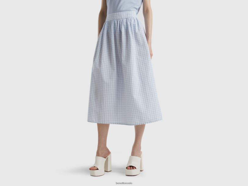 himmelblå Benetton kvinner vichy-skjørt i linblanding 20TRB4172