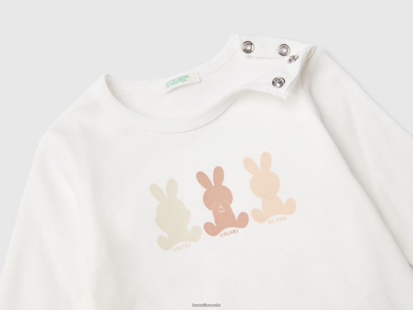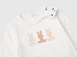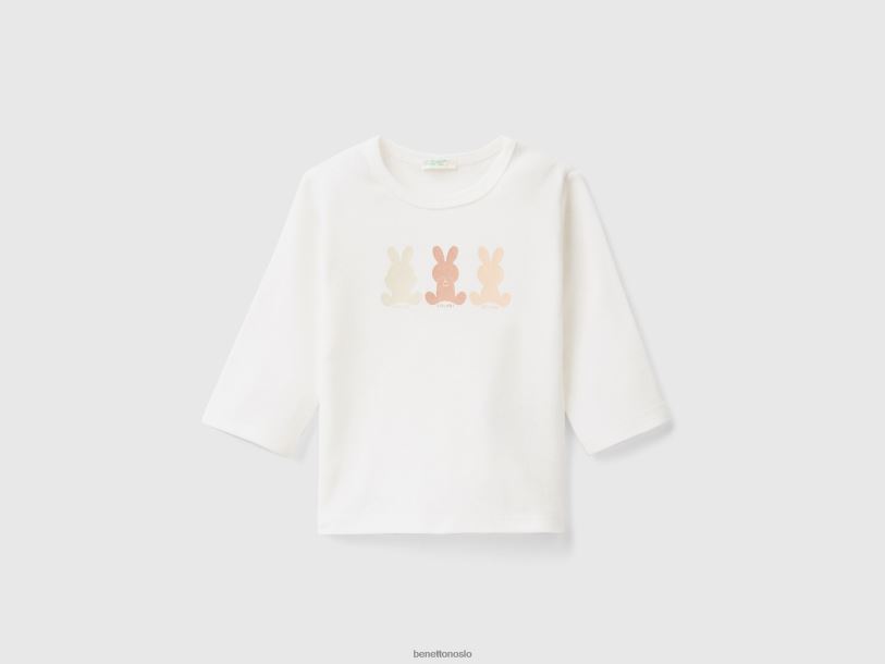 hvit Benetton barn langermet t-skjorte i 100 % økologisk bomull 20TRB5851