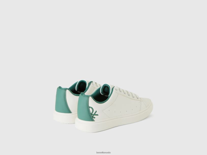 hvit Benetton kvinner t-skjorte med båthals i 100 % bomull 20TRB436