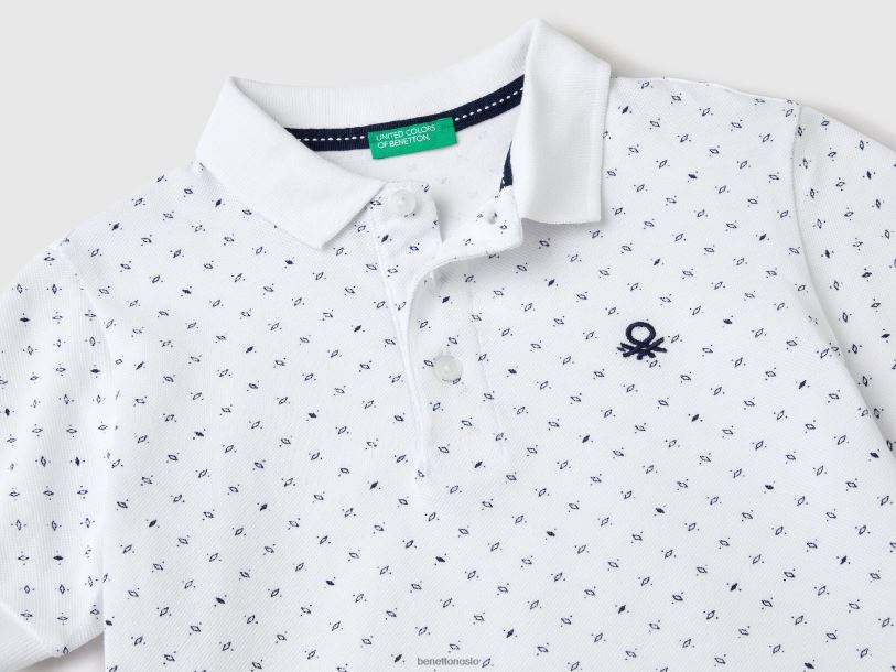 hvit Benetton barn mikromønstret polo med smal passform 20TRB1877