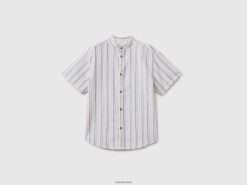 hvit Benetton barn stripet skjorte i linblanding 20TRB1707