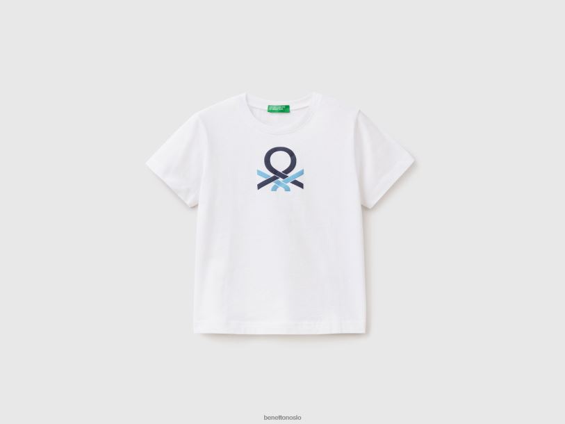 hvit Benetton barn T-skjorte i 100 % økologisk bomull med logo 20TRB2154