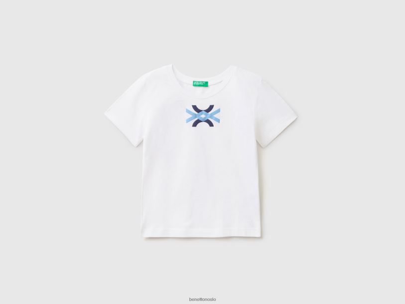 hvit Benetton barn T-skjorte i 100 % økologisk bomull med logo 20TRB2230