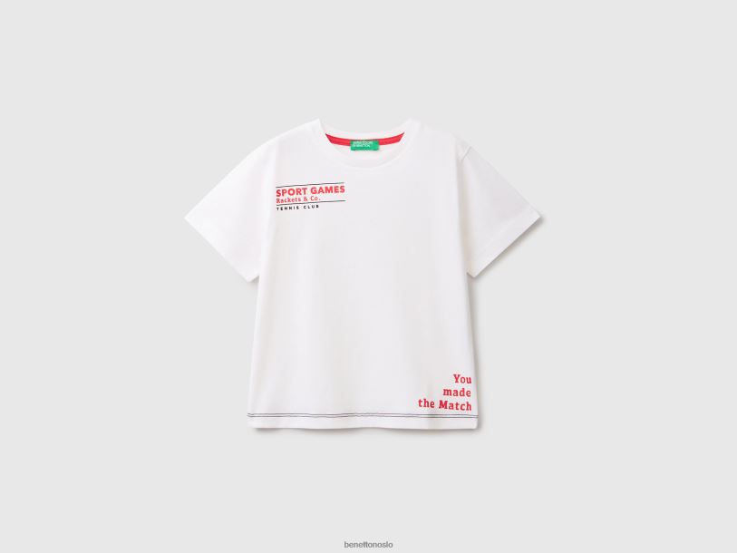 hvit Benetton barn T-skjorte med rund hals og trykk 20TRB2134