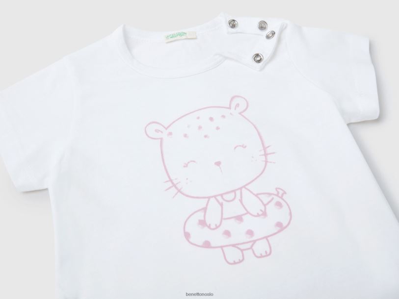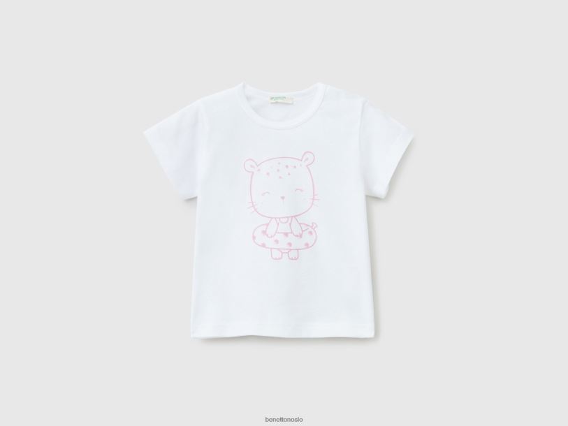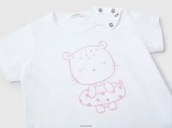 hvit Benetton barn t-skjorte med trykk i økologisk bomull 20TRB5811