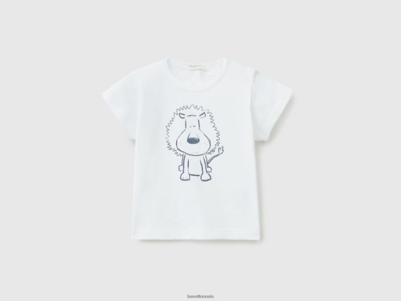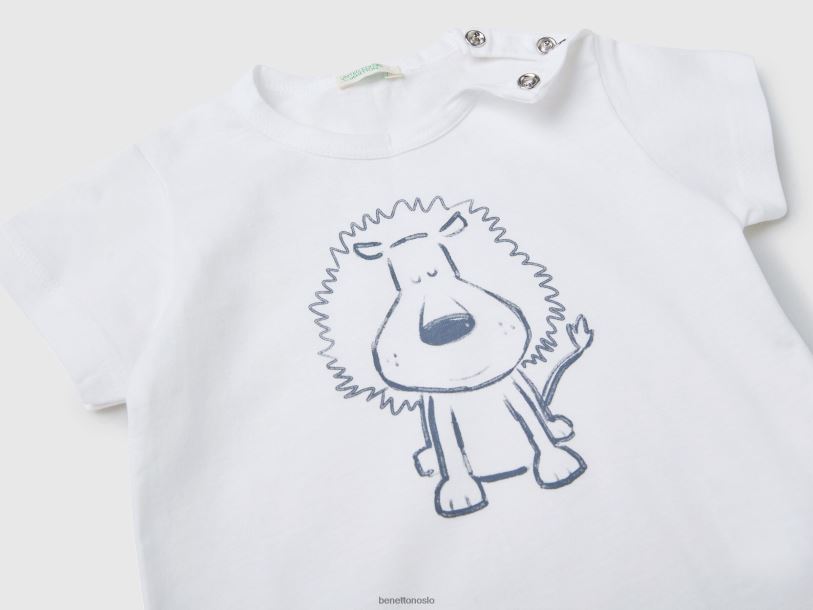 hvit Benetton barn t-skjorte med trykk i økologisk bomull 20TRB5832