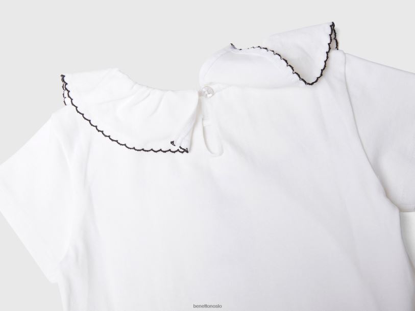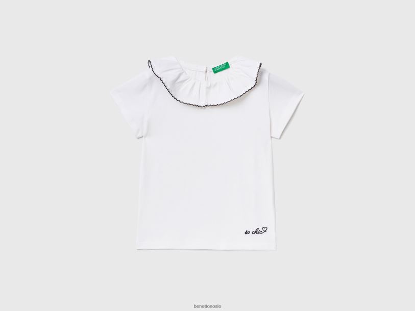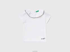 hvit Benetton barn t-skjorte med volangkrage 20TRB2894