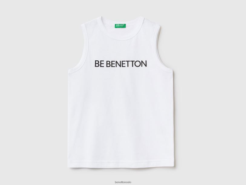 hvit Benetton barn tank topp i 100 % økologisk bomull med logo 20TRB1666