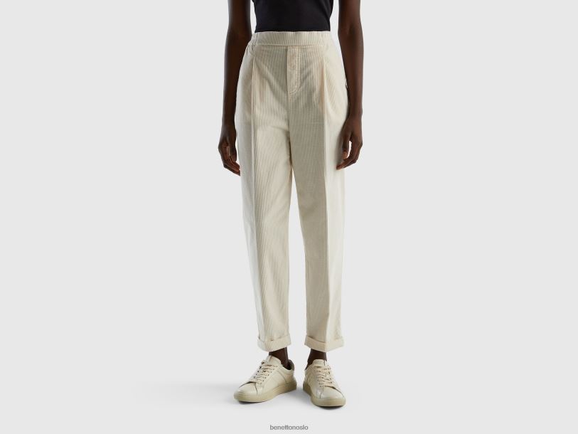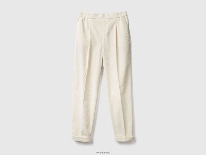 hvit Benetton kvinner chinos i fløyel med stretch i midjen 20TRB650