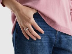 hvit Benetton kvinner T-skjorte med rund hals i slub bomull 20TRB372
