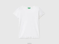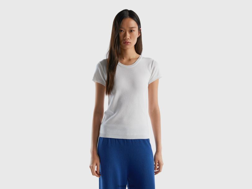 hvit Benetton kvinner kortermet genser i 100 % bomull 20TRB3626