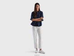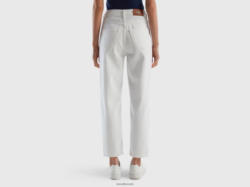hvit Benetton kvinner lang mamma fit bukser 20TRB609